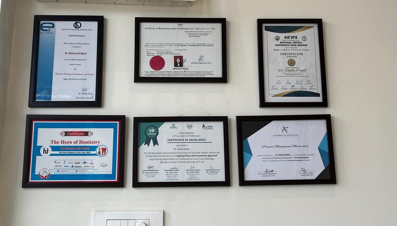 Dr. Diksha Mittal is a Prosthodontist with a passion for crafting beautiful, natural smiles. She specializes in Crowns, Bridges, Dental Implants, and Cosmetic Dentistry.